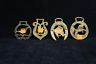 4 Vintage Decorative Brass Hanging Ornaments Equestrian Pheasant Lion Horseshoe