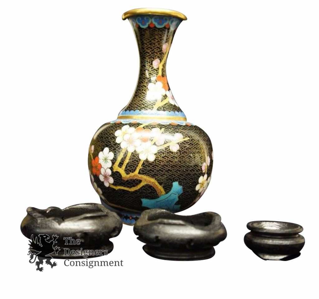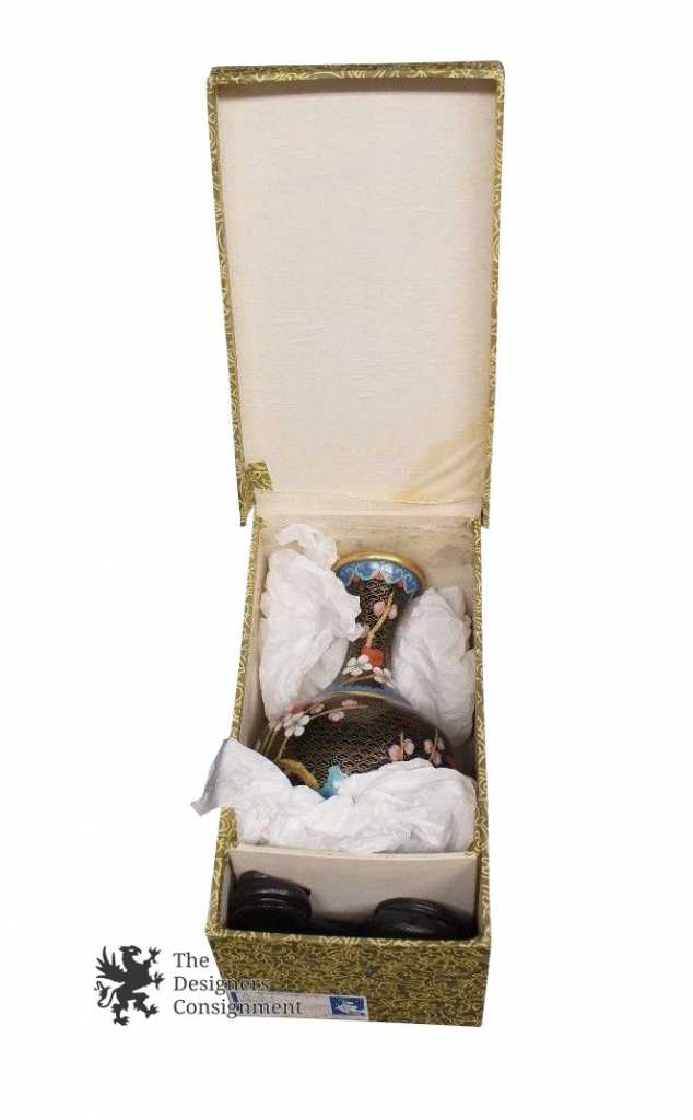 Vtg JINGFA Cloisonne Bowl Cherry Blossom & Birds Republic China Enamel Box Stand