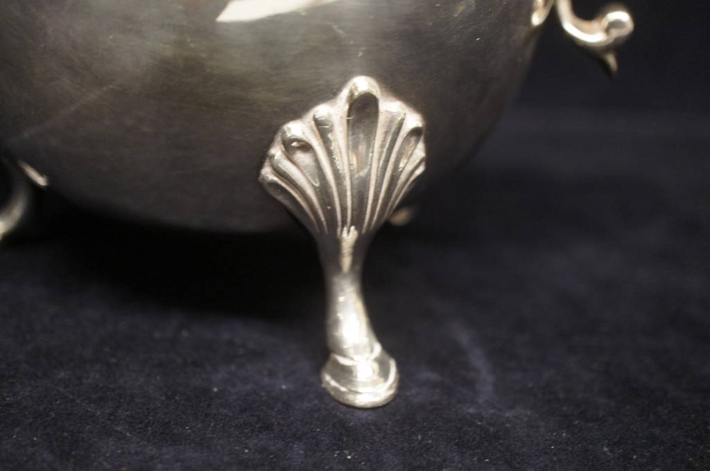 Large Antique Georgian Style Footed Silver Plate Sauce Gravy Boat Repousse Cream
