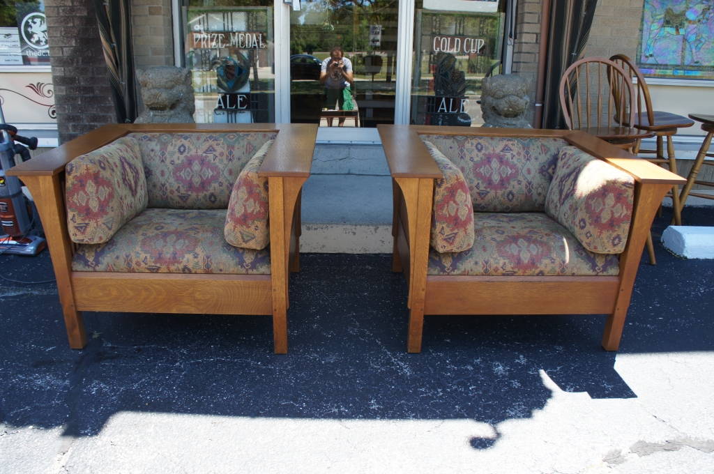 2 Oversized Stickley Mission Collection Prairie Arm Chairs 89-417