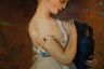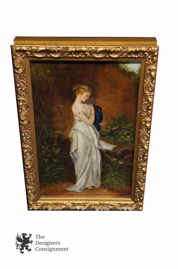 Early 20th Greek Inspired Oil Painting On Board Woman Carrying Pitcher Framed