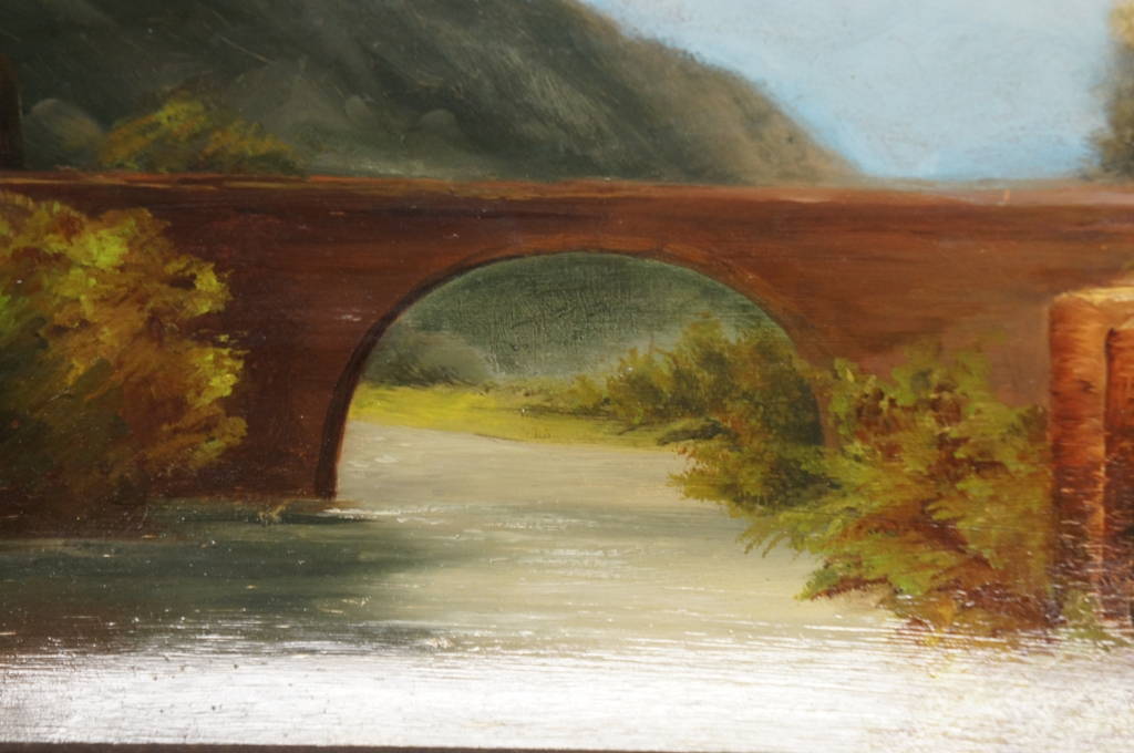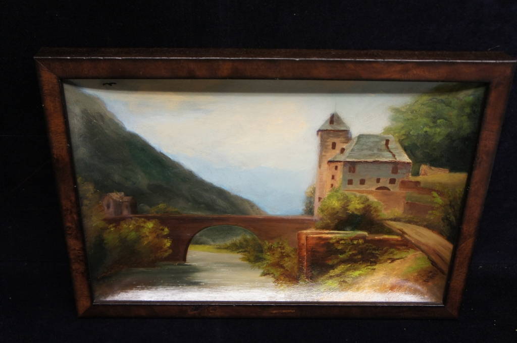 Early 20th Century Concave Landscape Chateau Bridge Realism Europe Mountain