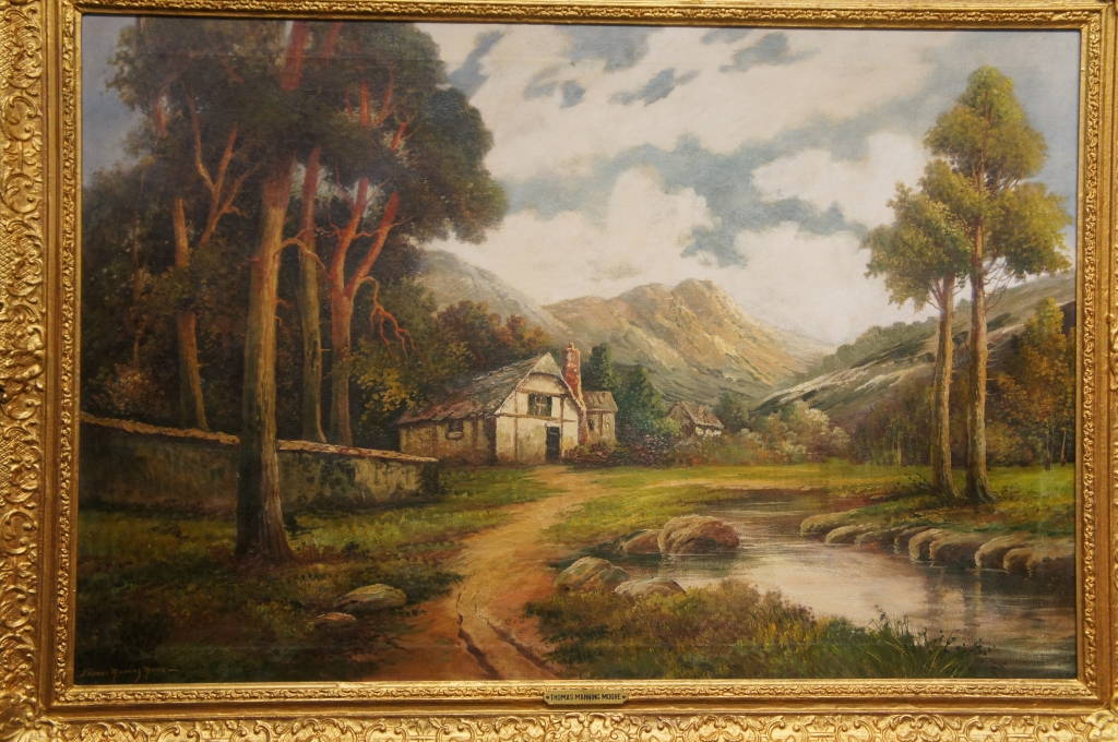 Thomas Manning Moore Signed 19th C. Oil Canvas Cottage Landscape Antique Paint