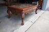 Stunning Cherry Carved Cocktail Table Faux Marble Top Coffee Vtg Distressed 54