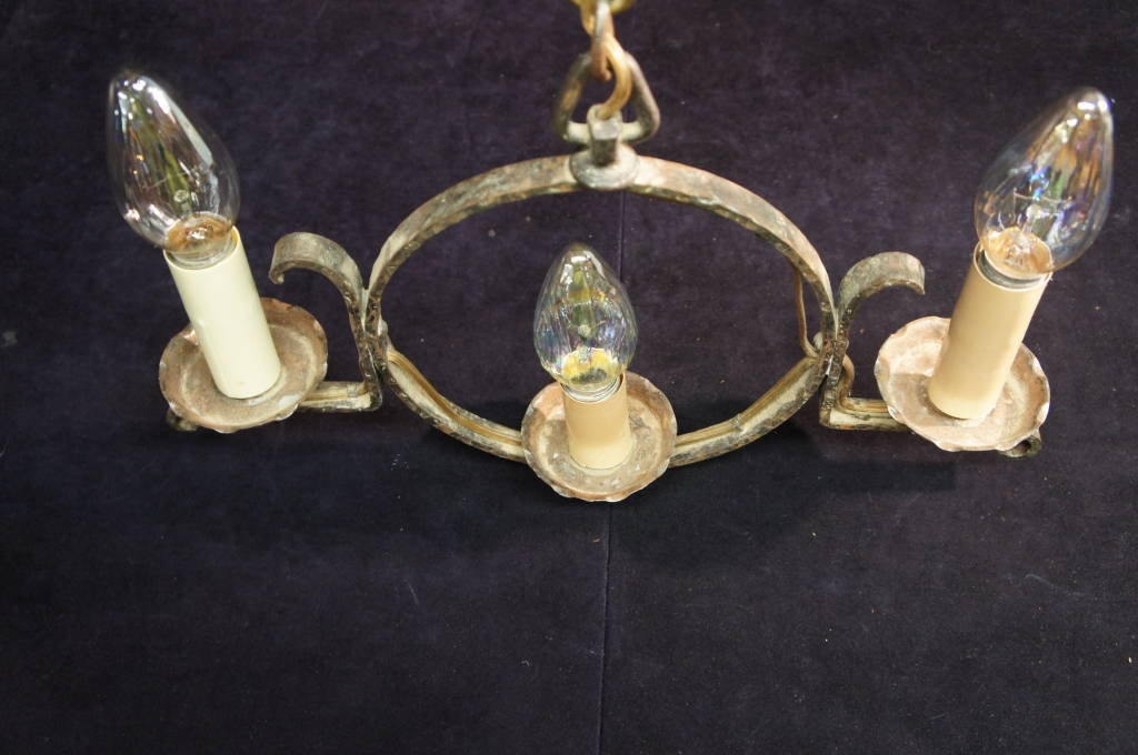 Antique Hammered Cast Iron Spanish Revival 3 Light Hanging Chandelier Sconce