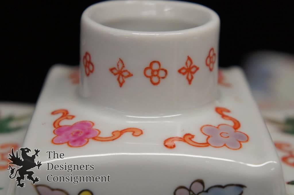 2 Maitland Smith Ltd Famille Verte Ginger Jars Painted Lidded Vases Floral Rose