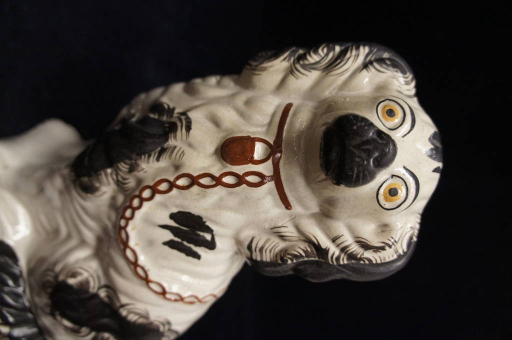 Antique 19th C. Black & White Staffordshire Seated Spaniel Figure 11" Dog Chain