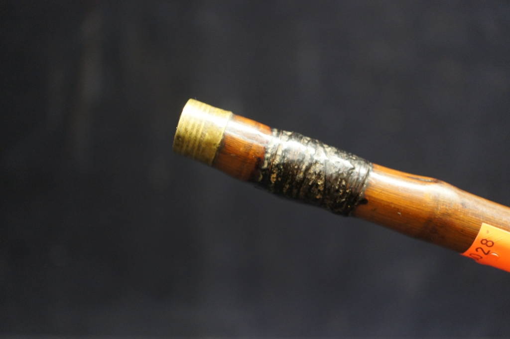 Antique Chinese Handmade Bamboo Opium Pipe W/ Brass Bowl 16" Oriental Tobacco