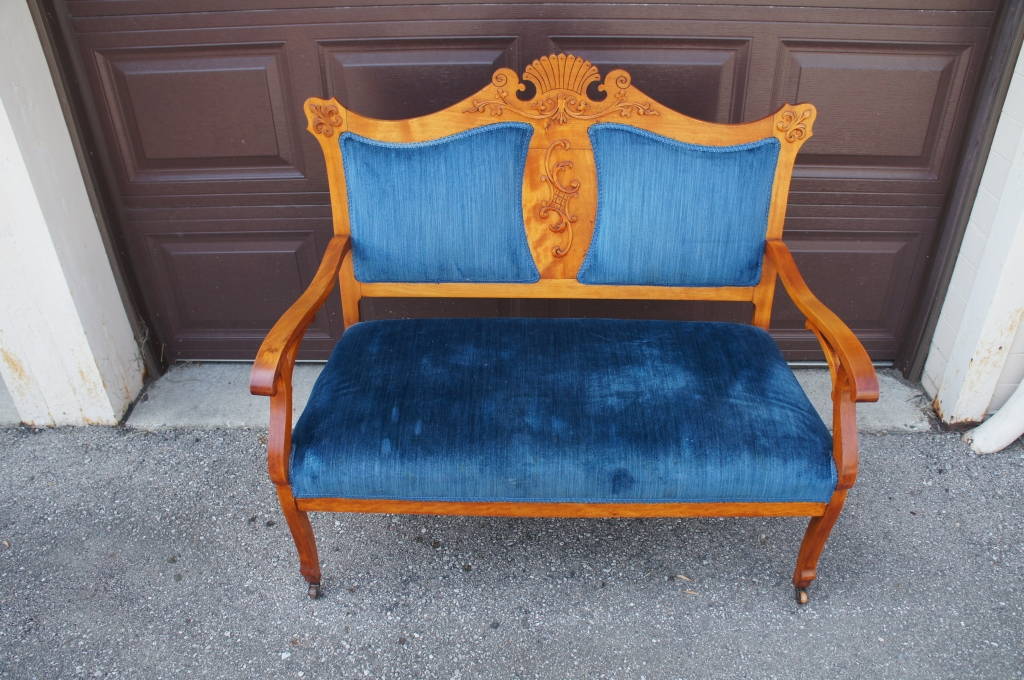 Stunning Blue Eastlake Settee Antique Victorian Love Seat Parlor Bench w Castors