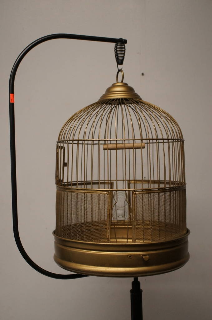 Antique Yorkshire Cast Bird Cage and Stand Gold Toned Indianapoli Dome Victorian