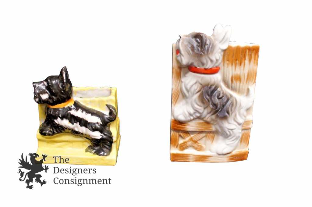 Vintage Scotty Dog Japan Wall Pockets Terrier Hanging Ceramic Painted