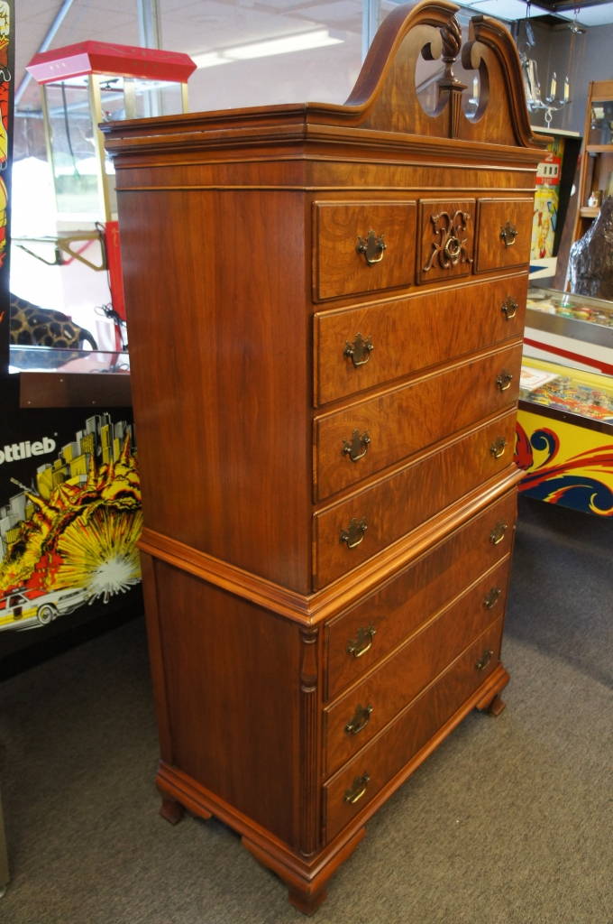 Chippendal Style Maple Burlwod Tall Boy High Chest 9 Drawers Dresser Mid Cent.