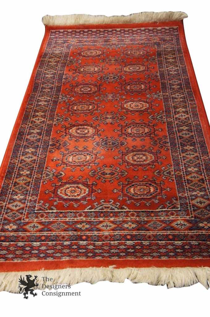 100% Wool Belgium Made Geometric Area Rug Runner 2.1' x 4.5 Oriental Design Red