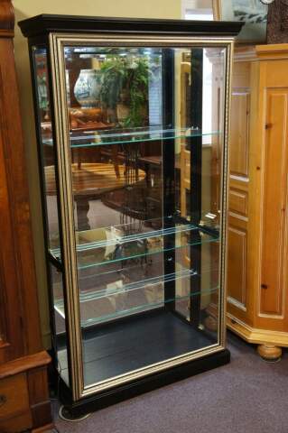 Pulaski Furniture Painted China Cabinet Illuminated Mirror Curio Display Modern