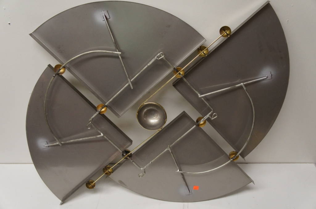Curtis Jere Wall Art - 1998 Modernist Aluminum Metal & Brass Hanging Sculpture