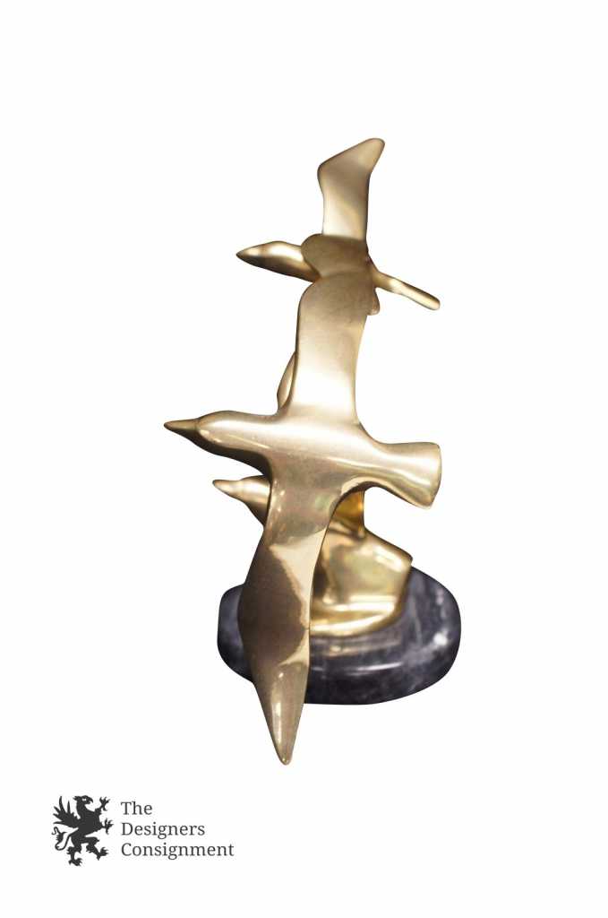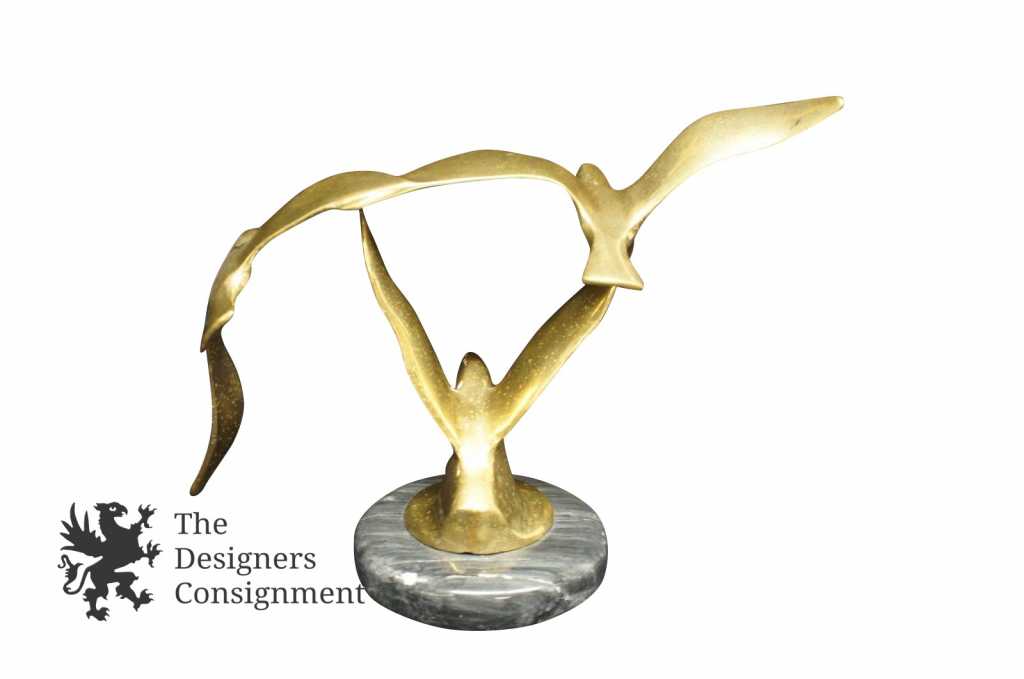The Import Collection" Brass Birds on Marble Base Seagull Desk Paperweight Vtg