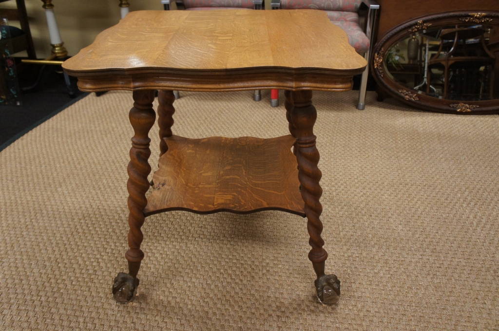 Antique Quartersawn Oak Claw Foot Tiered Parlor Table Barley Twist Serpentine