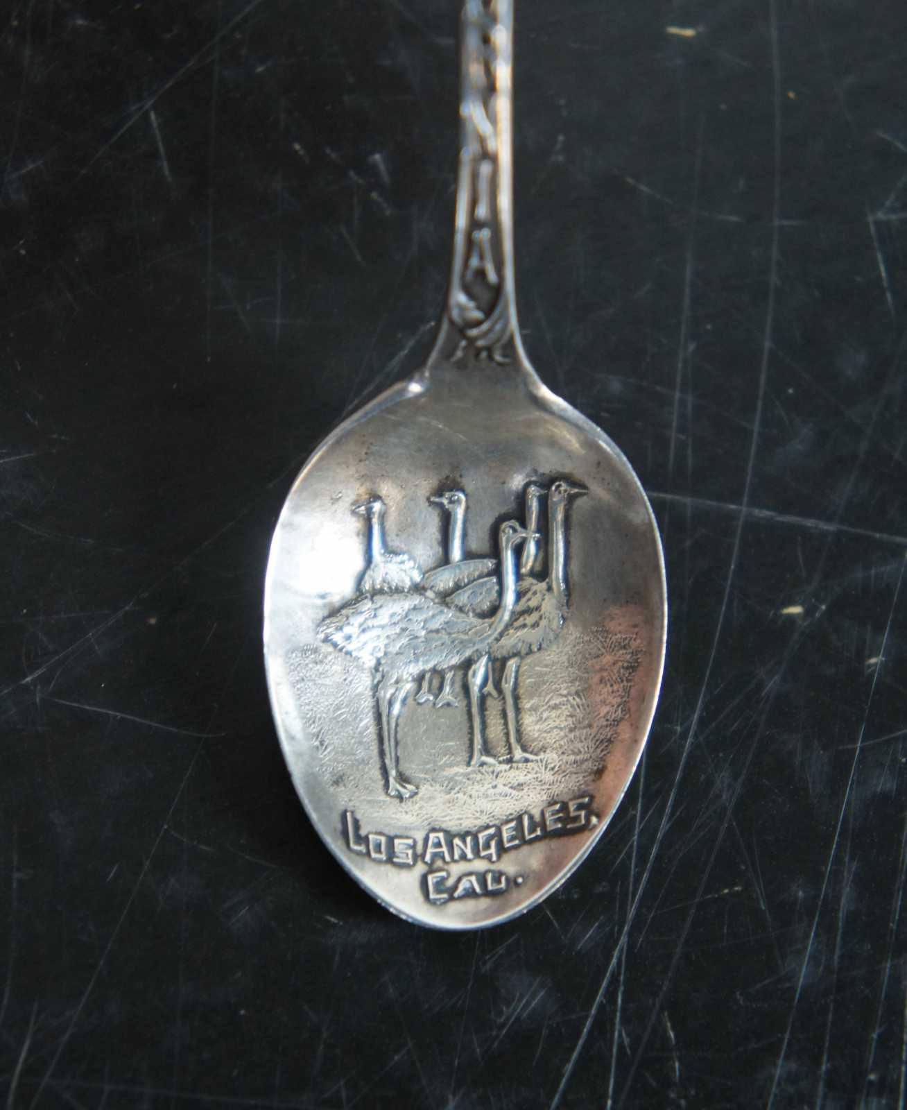 Antique P&B sterling silver .925 Los Angeles, California ostrich farm souvenir spoon.