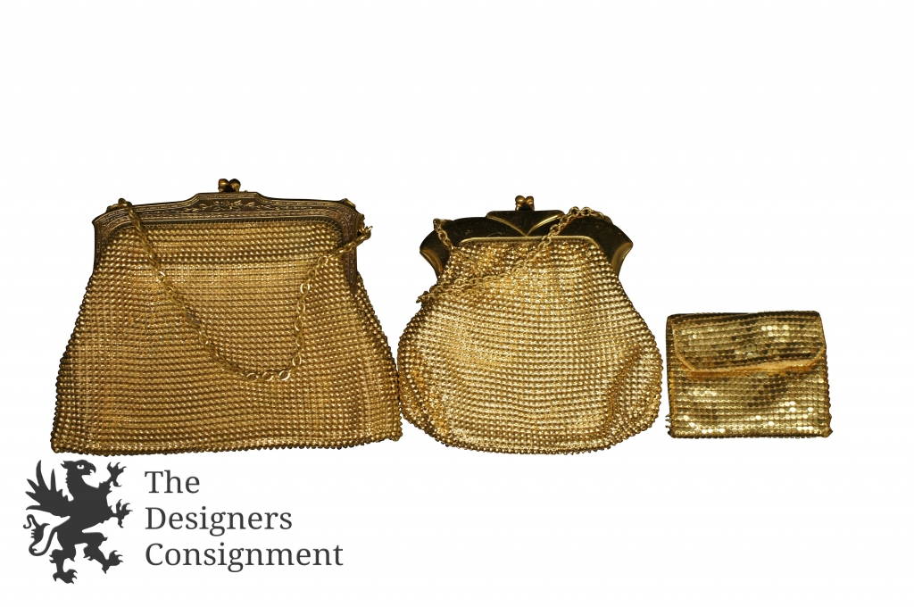 3 Vintage Whiting & Davis Gold Rhinestone Bubble Mesh Clutch Purses Art Nouveau