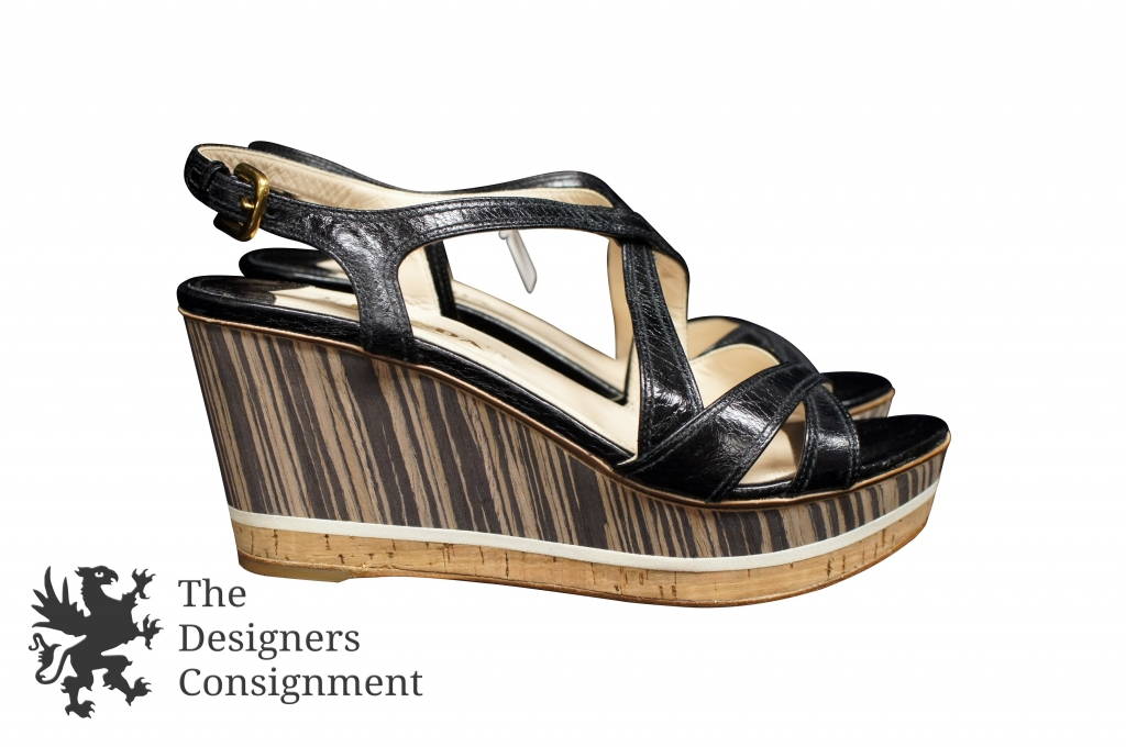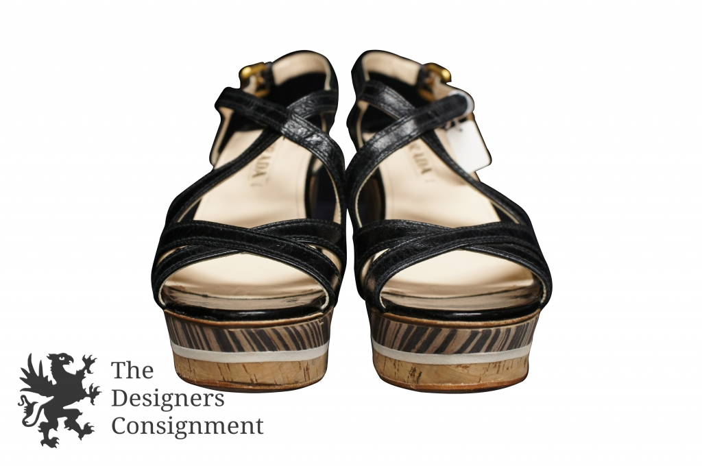 Prada Platform Sport Wedge Sandals Leather Cork Bottom 39.5 Slingback