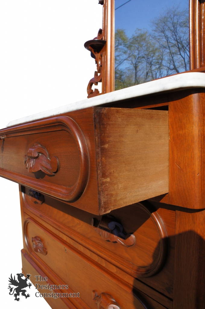Antique Victorian Carved Walnut Eastlake Wash Stand Marble Top Dresser Shave