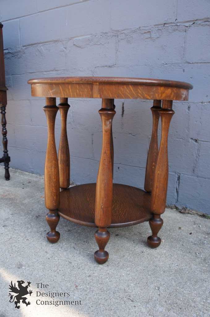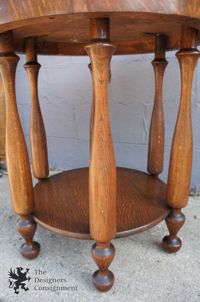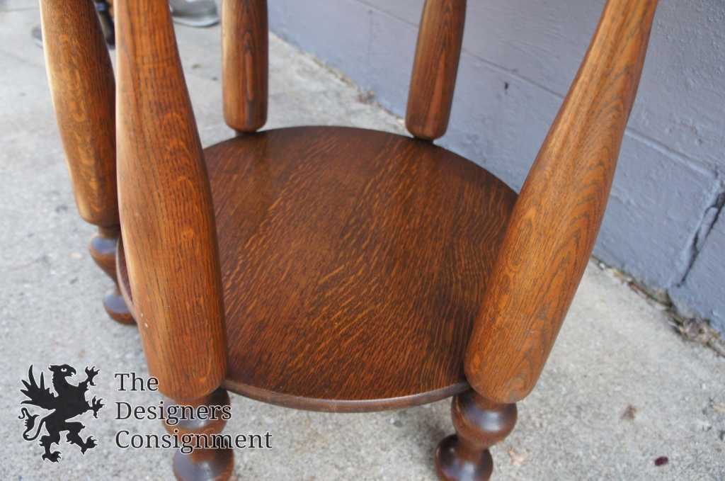 Mid Cent. Quartersawn Oak Mission Style Drum Table Spindle Accent Round Bat Vtg