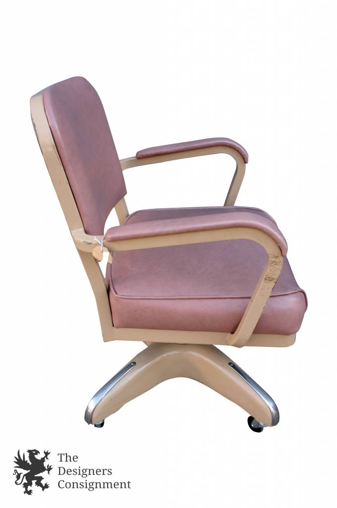 Cole Steel Industrial Office Desk Chair Pink Leather Seat Aluminum Mid Century