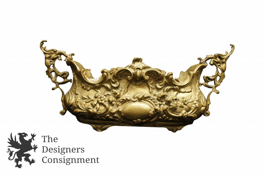 Rare Antique Art Nouveau 16" Gilt Brass Jardiniere Planter Centerpiece Repousse