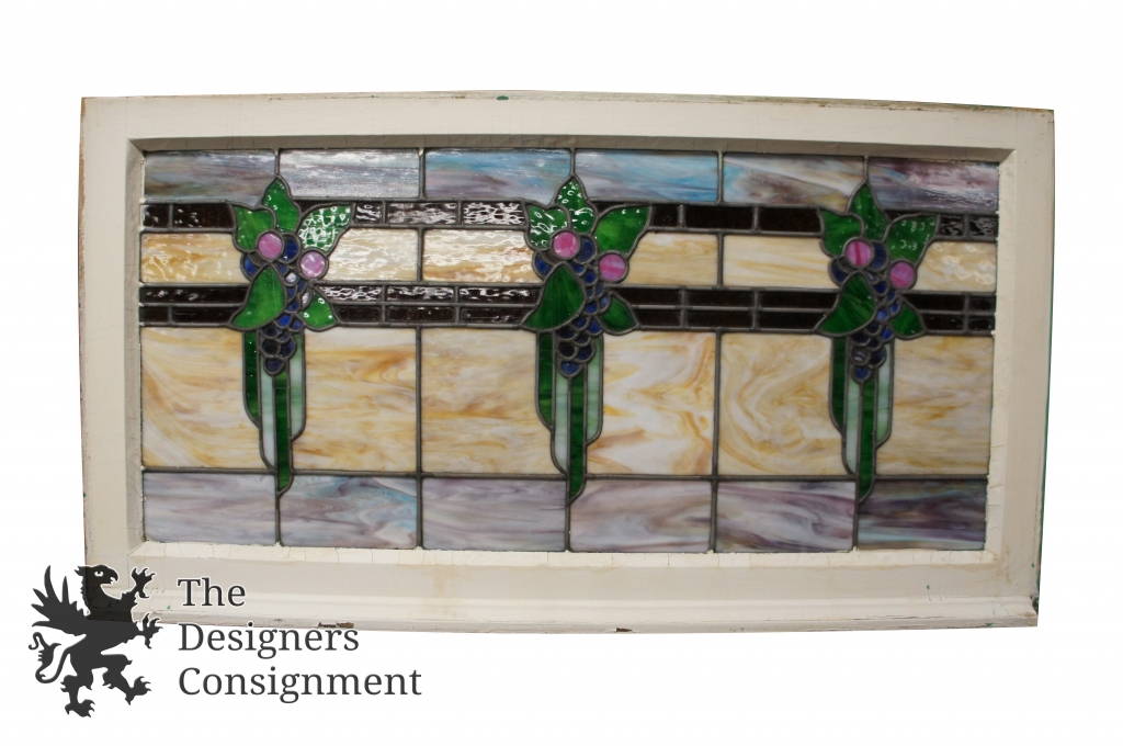 A beautiful handmade stained glass window panel. Savaged from an early 20th century mid west home. Features intricate detail and color!