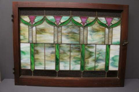 Early 20th Century Leaded Slag Glass Stained Window Panel Architectural Salvage