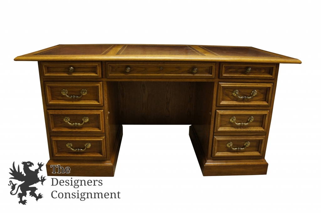 National Mt. Airy Brown Leather Top Executive Office Desk Oak