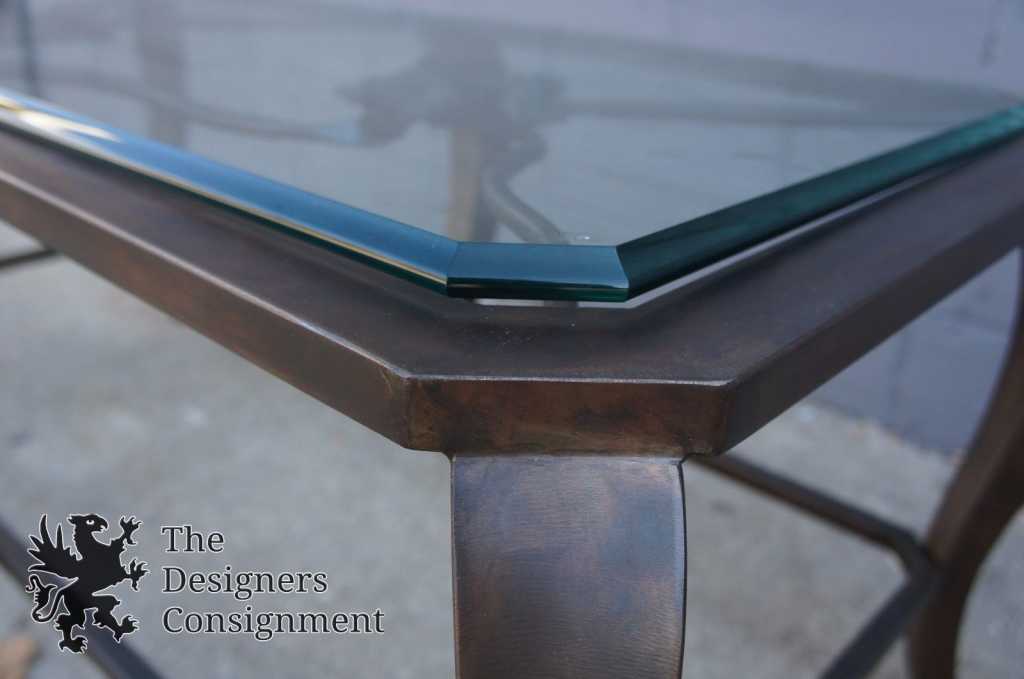 Stunning Contemporary Glass Top Coffee Table Cocktail Floral Accent Metal Base