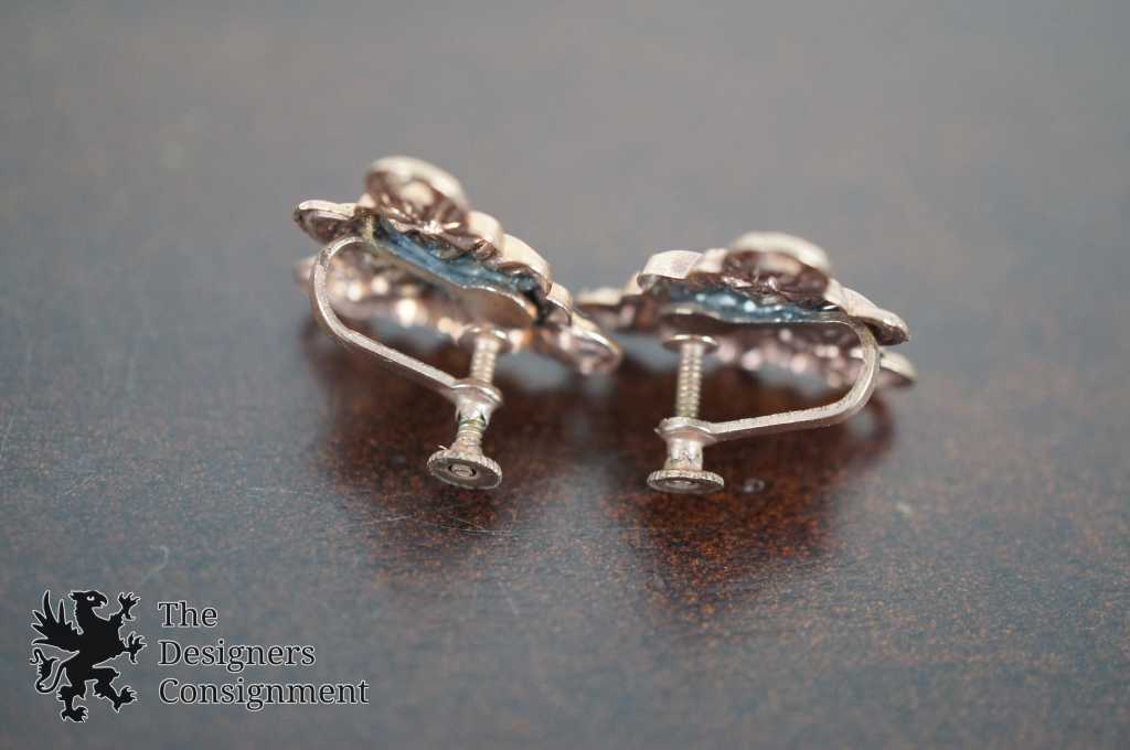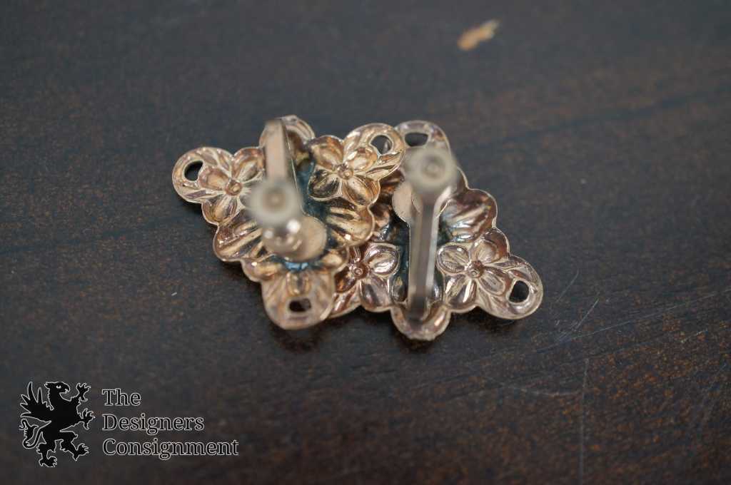 Vintage Triangular Molded Flower Screw Back Earrings