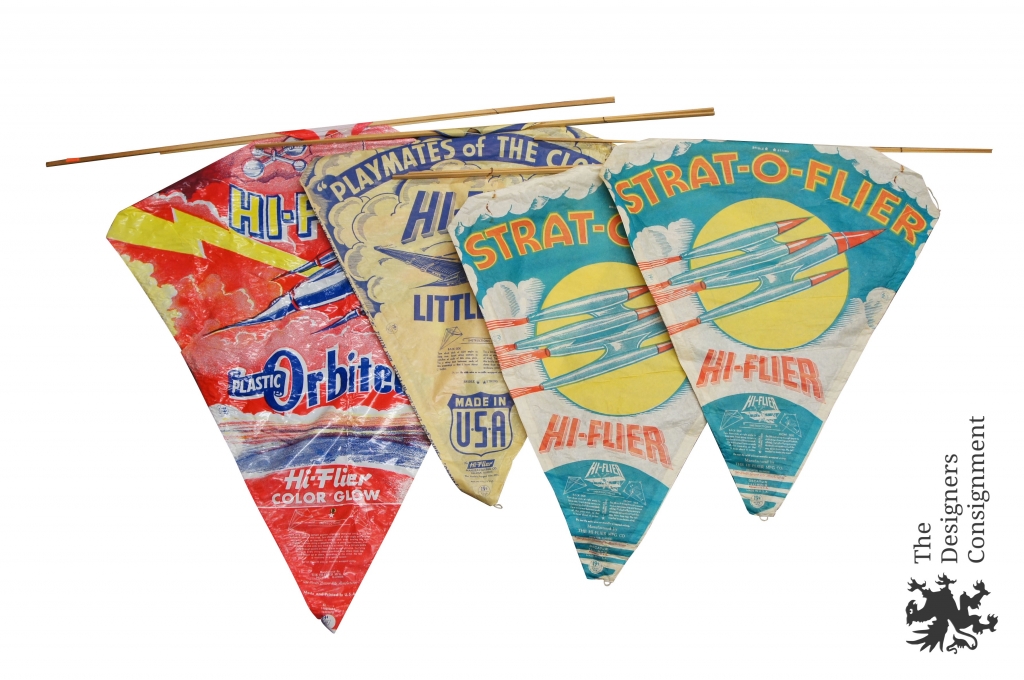 4 Vintage Hi-Flyer Paper Advertisement Kites Plastic Retro Airplane Rocket Cloud