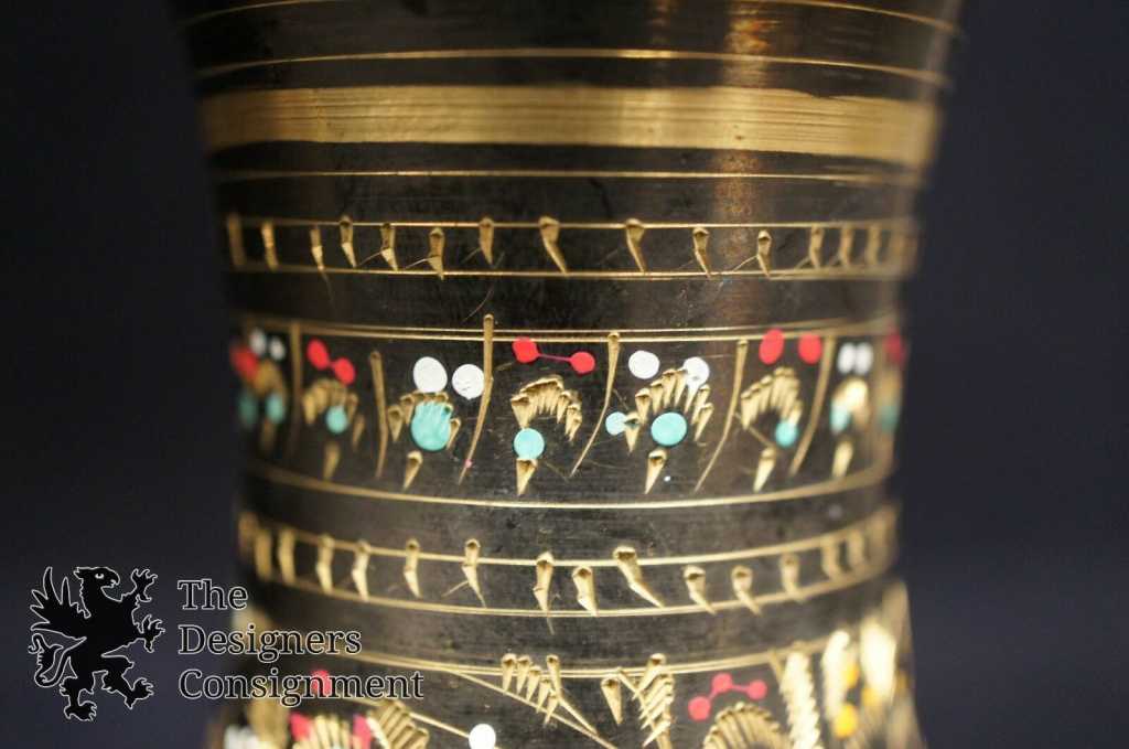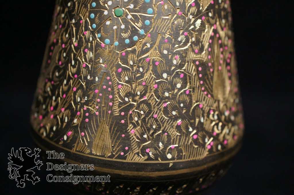 4 Colorful Vintage Embossed Brass Persian Vases Mantel Display