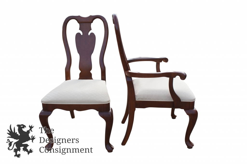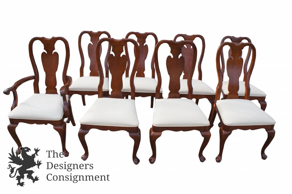 8 Vintage Queen Anne Style Mahogany Dining Chairs Cabriole Legs Upholstered Seat