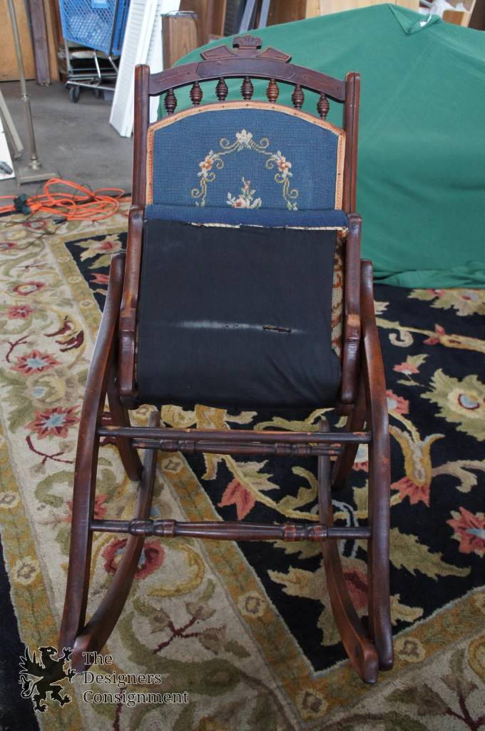 A lovely folding Rocker. Made from Walnut with a needlepoint upholstered seat.