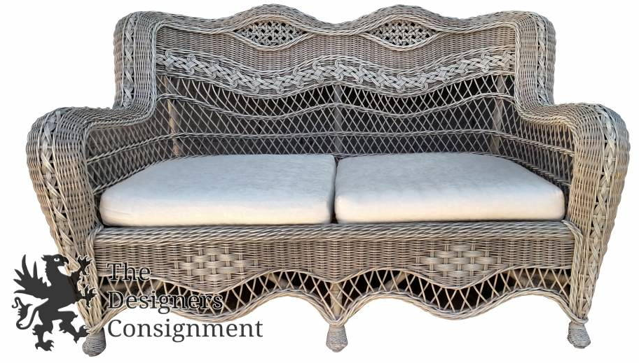 Woven Wicker Love Seat Sofa Pier 1 Cushions Country Chik Outdoor Patio Settee