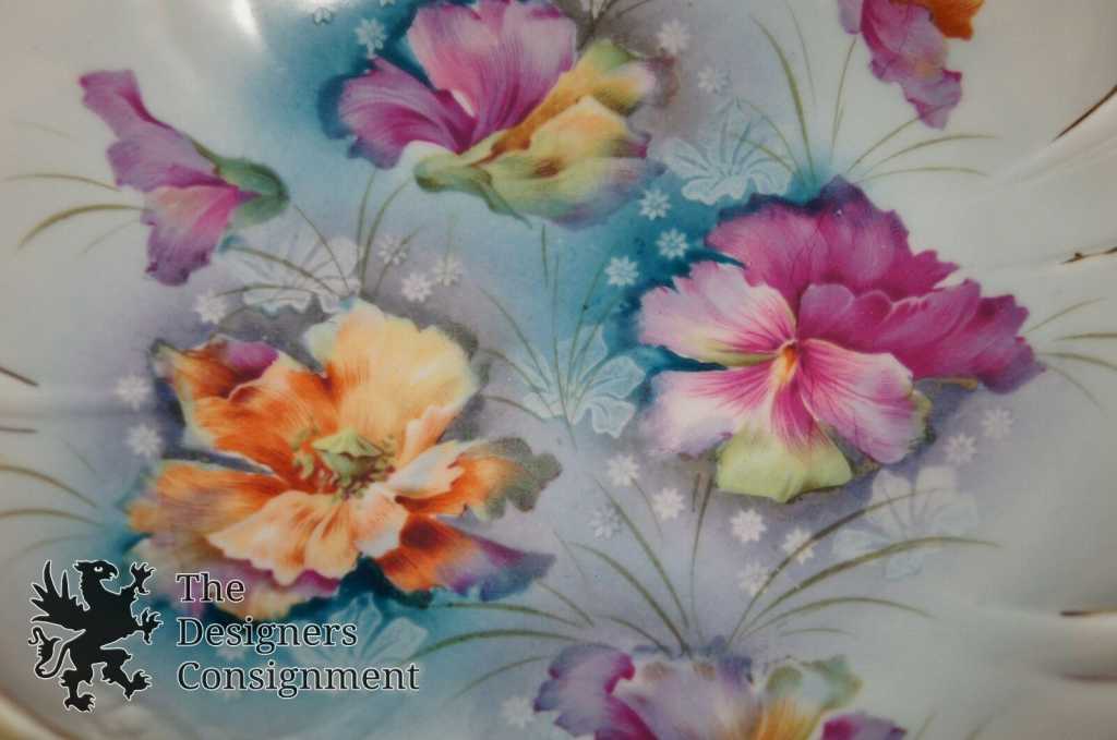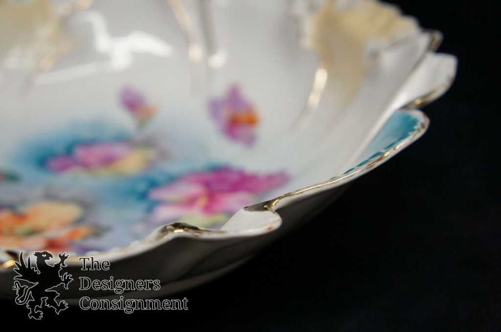 Flower Shaped Porcelain Bowl Gilded Edge and Petals Floral Painting