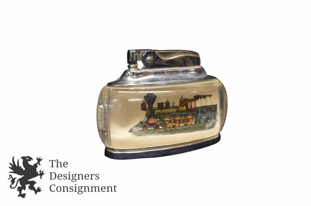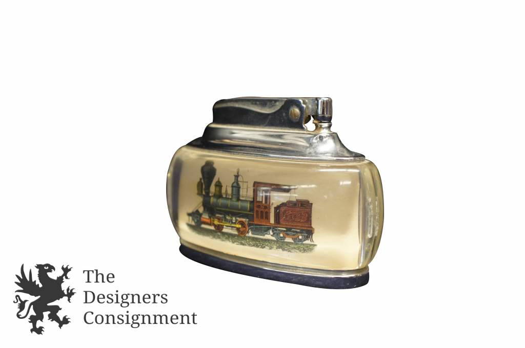 Rare Vintage Ronson Lucite Trophy Table Lighter Train Locomotive Design (AB89)