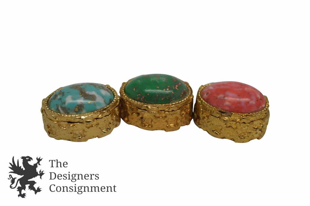 3 Vintage Pill Boxes by Mycraft Fifth Avenue Inlaid Stone Ornate Gold Tone