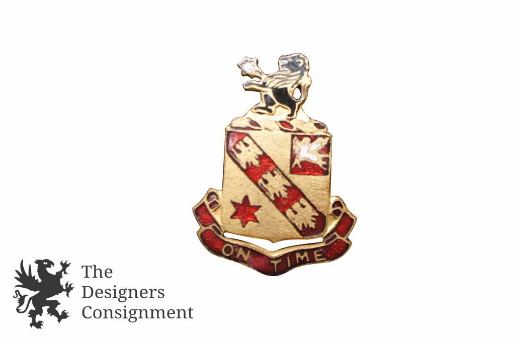On Time Lapel Pin N.S. Meyer Inc Crest with Lion 11th Field Artillery US Army