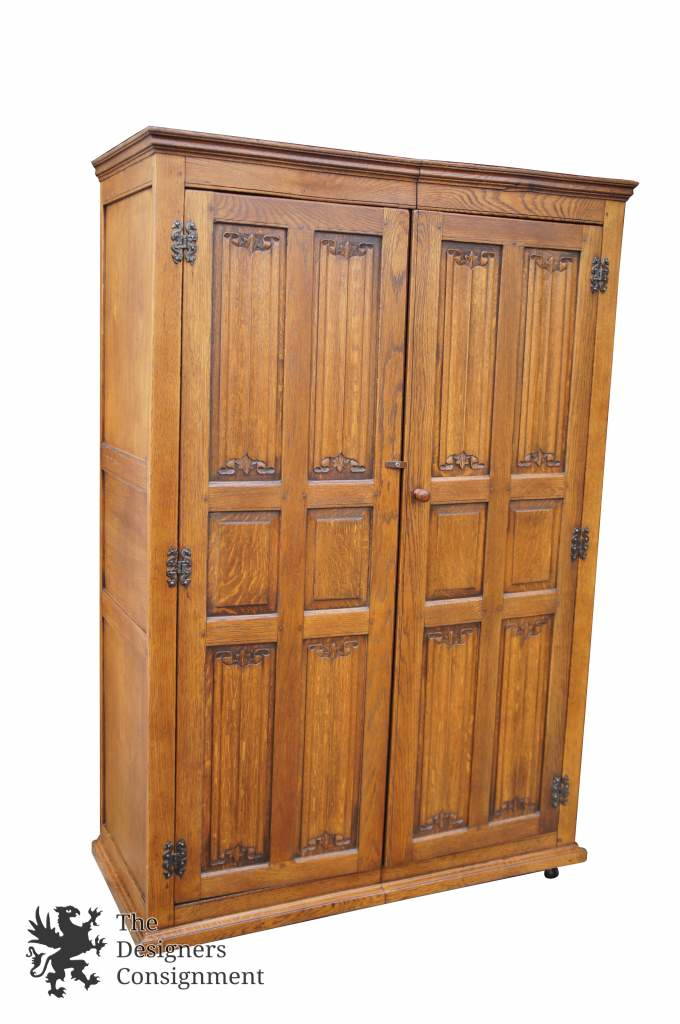 A magnificently early 20th century cabinet. Originally a knockdown that has been fastened together. The front features 12 panels, 8 of which are hand carved with scroll work and acanthus detail. A great piece for any bedroom or living space. Will be hand delivered via white glove service