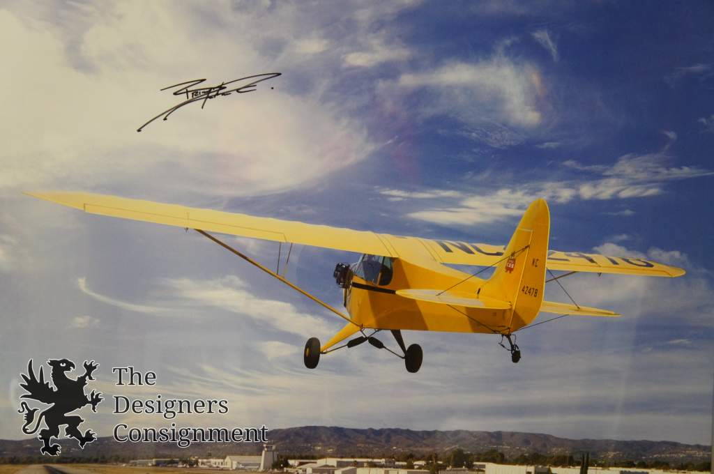 Freatures the Piper Cub Airplane in Van Nuys California just prior to touchdown