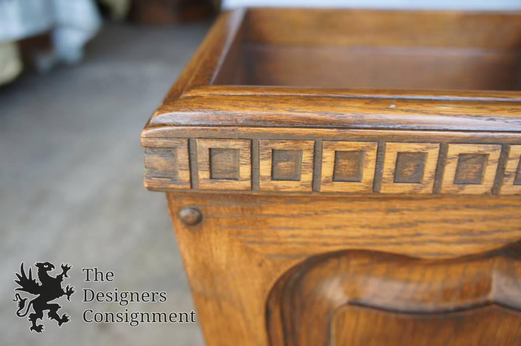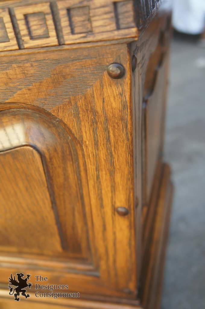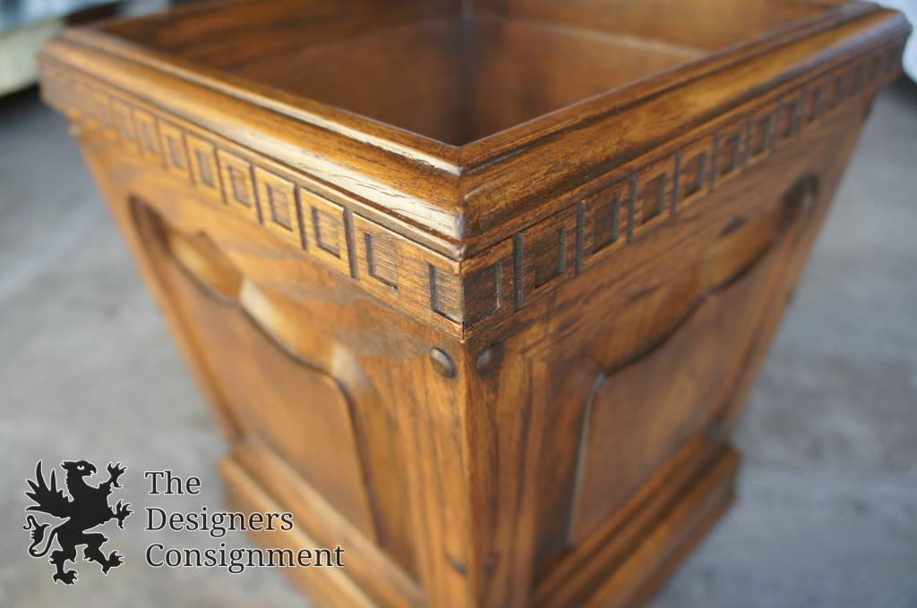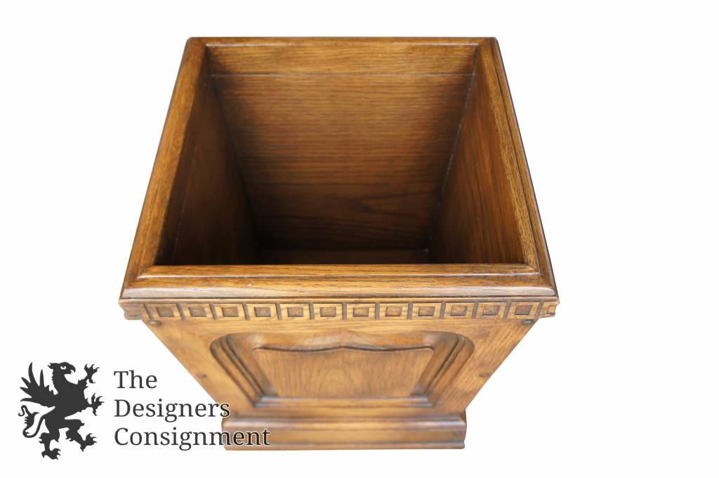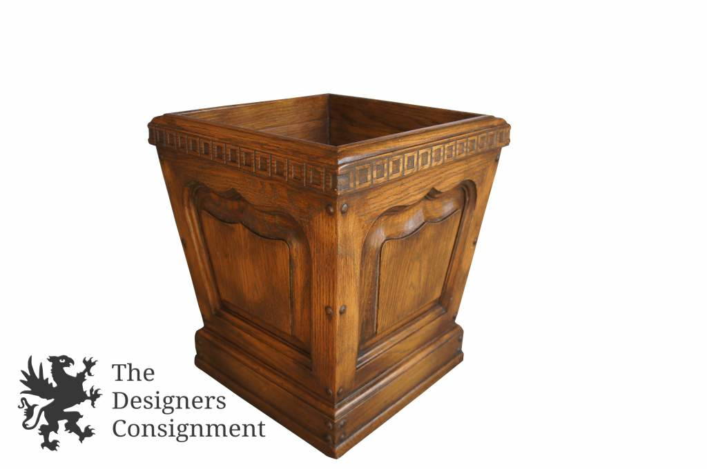 Vintage Romweber Viking Oak Carved Waste Basket Trash Bucket Mid Century