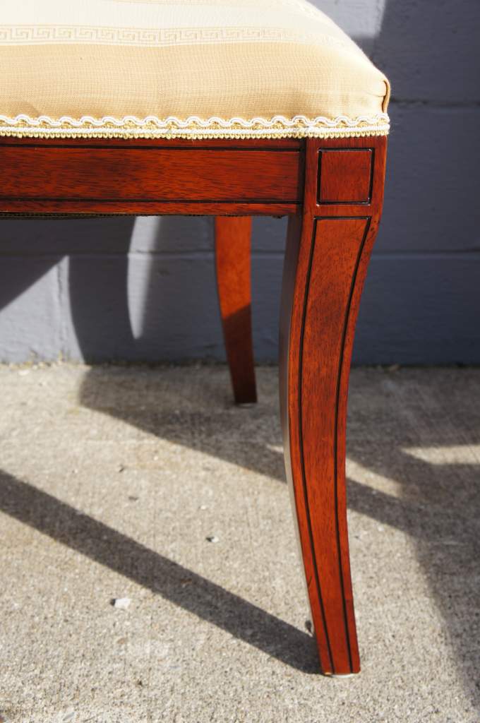 A beautiful set of 8 chairs. Made from Mahogany with black trim and brass medallions. Matching Table available if interested.