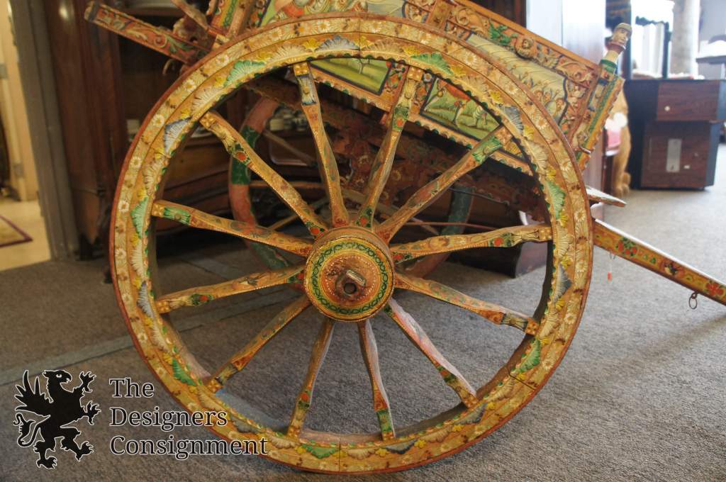 This beautiful cart features a hand painted Ottoman Empire fighting scene throughout with amazing attention to detail. Includes carvings, metal work and hand painted accents.