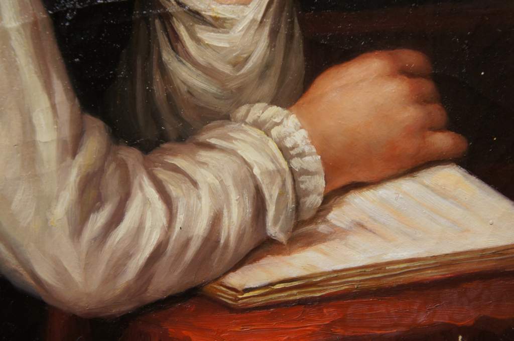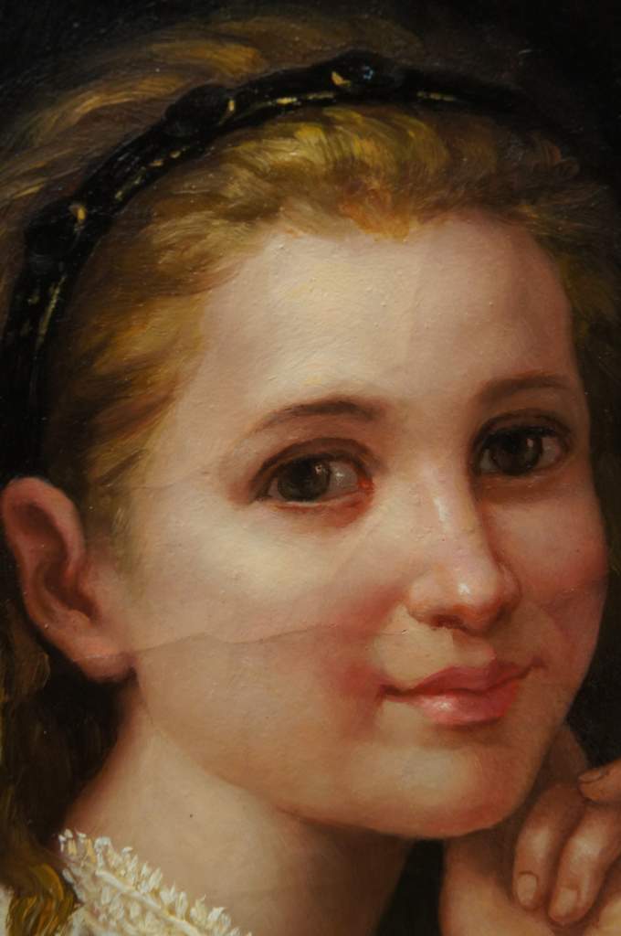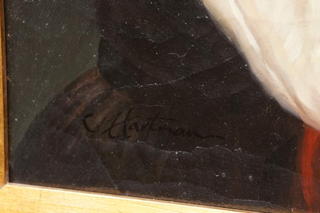 C. Hartman Signed Oil Painting on Wood Panel School Portrait Blonde Girl Book