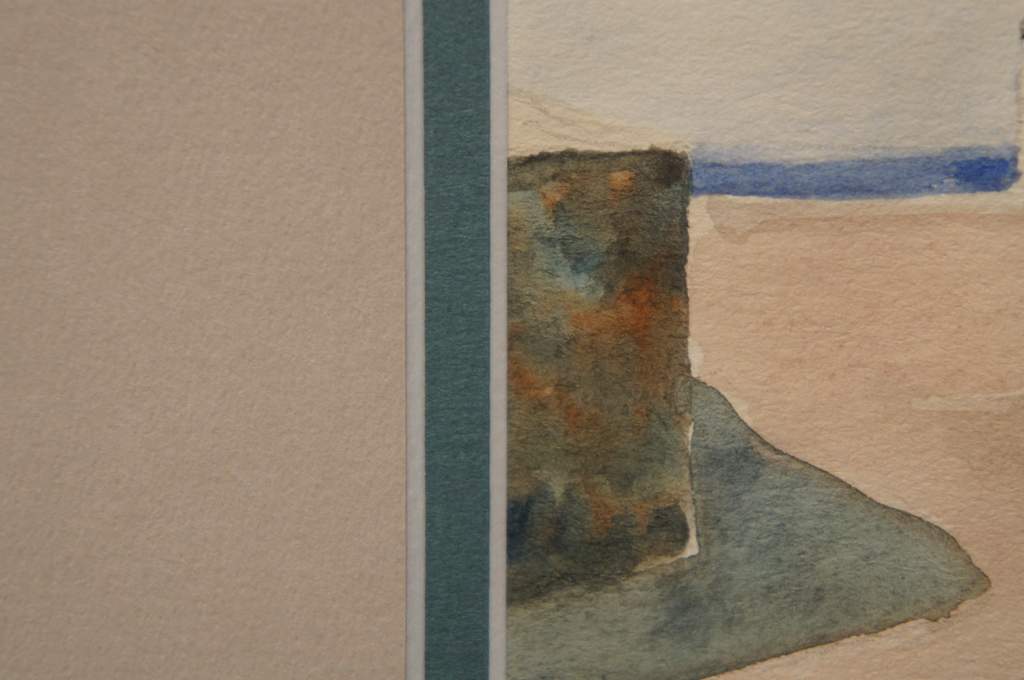 Vintage Meriel 1967 Watercolor Painting Landscape Windmills Figure hYDRA Greece