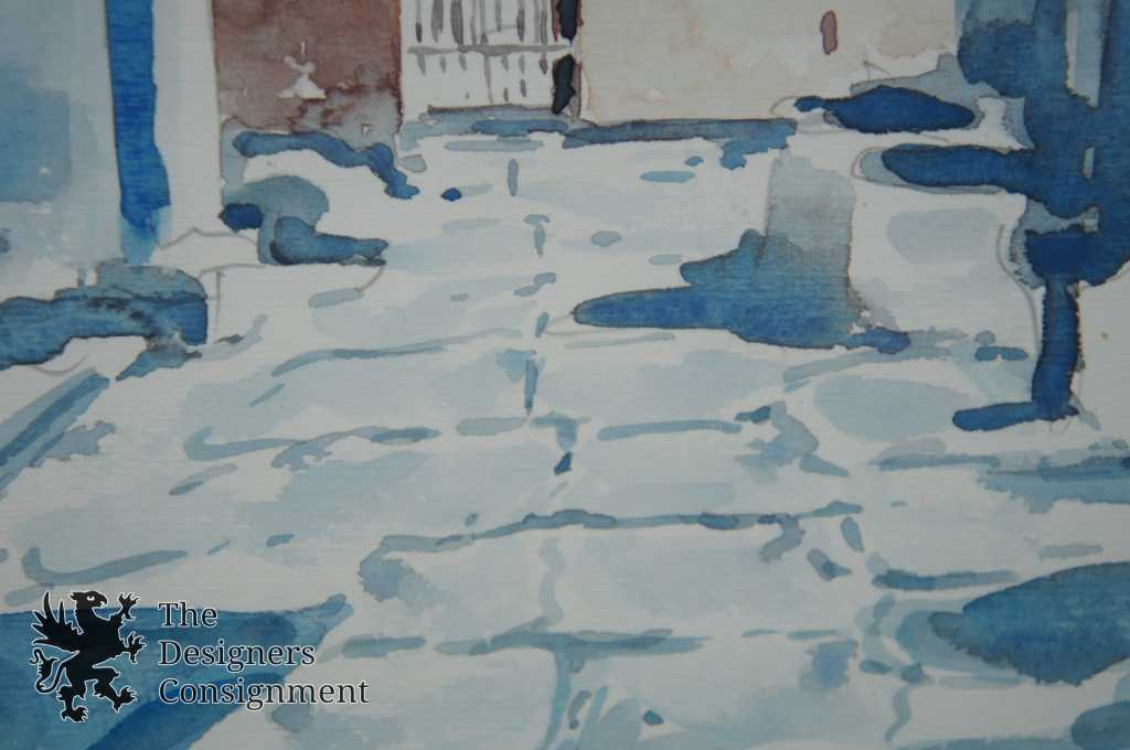 Greek Signed Watercolor Painting Cityscape Street with Bell TowerVintage Greek Signed Watercolor Painting Hydra Cityscape Street with Bell Tower